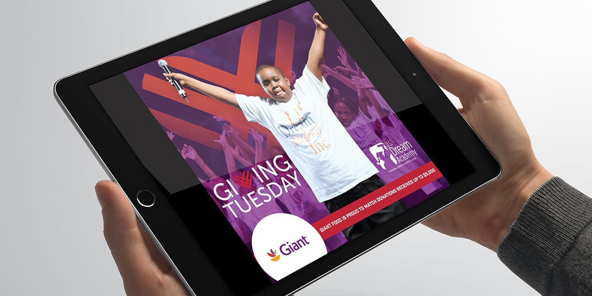 To encourage donations to the U.S. Dream Academy and the Boys & Girls Clubs of Greater Washington DC. Giant Foods graciously agreed to match donations up to $5,000 per organization. Ad creative had to accurately represent each organization, as well as Giant Food.