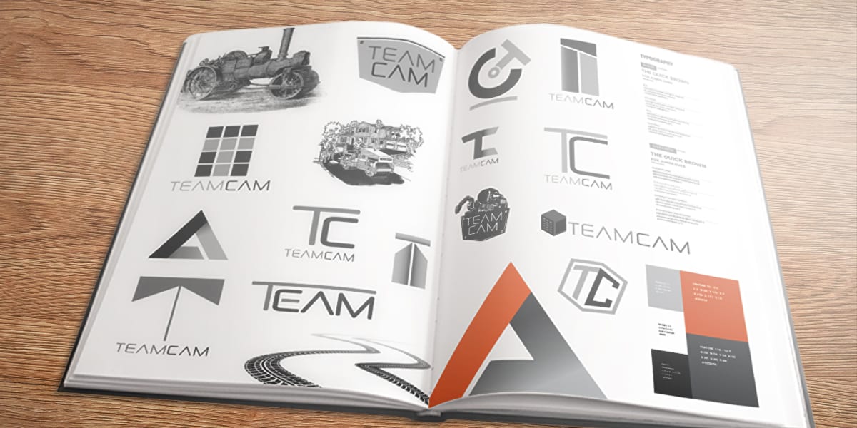Construction has long been respected and admired throughout history. There may be no better example than the pyramids. Strength, reliability, and design that lasts the test of time. In the color scheme, objects synonymous with the industry were used as guidance – for example, construction cones and safety vests were represented with a vibrant orange. In order to soften the design, a gradient of light to dark grey was utilized to relate to the concrete and asphalt work Team Cam prides itself on.